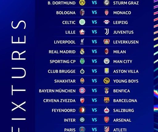 ብተመሳሳሊ ምሸት ሰዓት 5 ጣሊያናዊት ጋንታ ቦሎኛ ምስ ፈረንሳዊት ጋንታ ሞናኮ፣ ቦሩሺያ ዶርቱመንድ ምስ ኦስትሪያዊት ጋንታ ስትረም ግራዝ፣ ስኮትላንዳዊት ጋንታ ሴልቲክ ምስ ጀርመናዊት ጋንታ ኣር ቢ ሌይብዚግ፣ ፈረንሳዊት ጋንታ ሊል ምስ ጁቬንቱስ ከምኡ እውን ፖርቹጋላዊት ጋንታ ስፖርቲንግ ሊዝበን ምስ ጋንታ ማንቼስተር ሲቲ ክፃወታ ኢየን፡፡