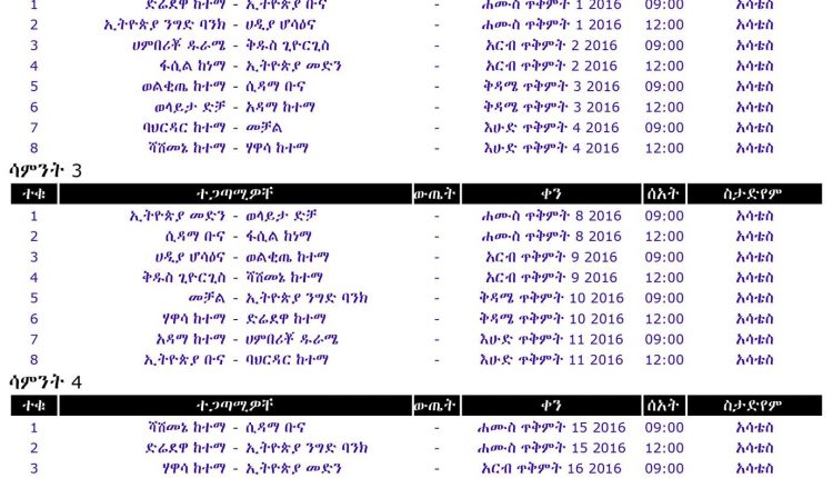 ኣዲስ ኣበባ፣ 4 መስከረም፣ 2016 (ኤፍ ቢ ሲ)ግብሪ ውድድር ፕሪሚየር ሊግ ኢትዮጵያ ካብ 20 መስከረም 2016 ዓ.ም ጀሚሩ ክካየድ ኢዩ።