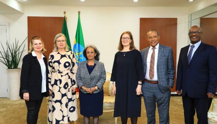 ኣዲስ ኣበባ ፣ 23 ጥቅምቲ፣ 2016 (ኤፍ ቢ ሲ)ፕሬዚዳንት ሳህለ ወርቅ ዘውዴ ምስ ኣካቢት ቦርድ ቀይሕ መስቀል ፊንላንድ ኤሊ ኣልቶነን ተዛቲየን።