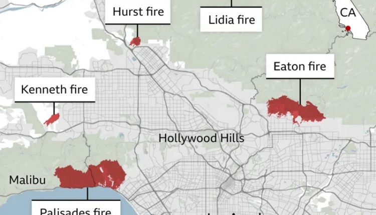 ፓሊሴድስ፣ ኢተን፣ ሃርስት፣ ሊዲያ፣ ሳንሴት፣ ኬነት ዝተባህሉ ሽዱሽተ ዓበይቲ ባርዓት ጫካ ኣስታት 20 ሽሕ ኣባይቲ ኣዕንዮም ከም ዘለው ሰብ መዚ እቲ ከባቢ ገሊፂም።